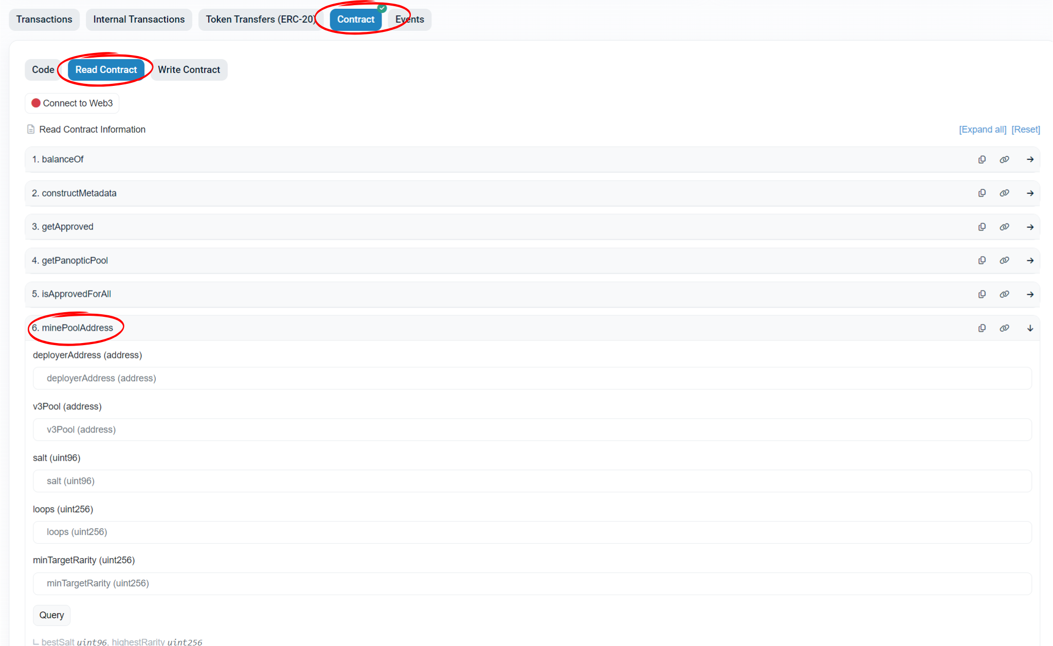 Navigate to the Contract: On Etherscan, click "Contract" and then "Read Contract". Locate and select the "minePoolAddress" function.